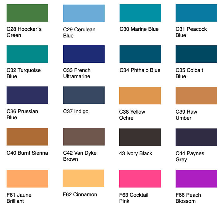 - Nueva presentación FAN de 56 tonos con 36 tonos sólidos, 10 tonos pasteles y 10 tonos metálicos)